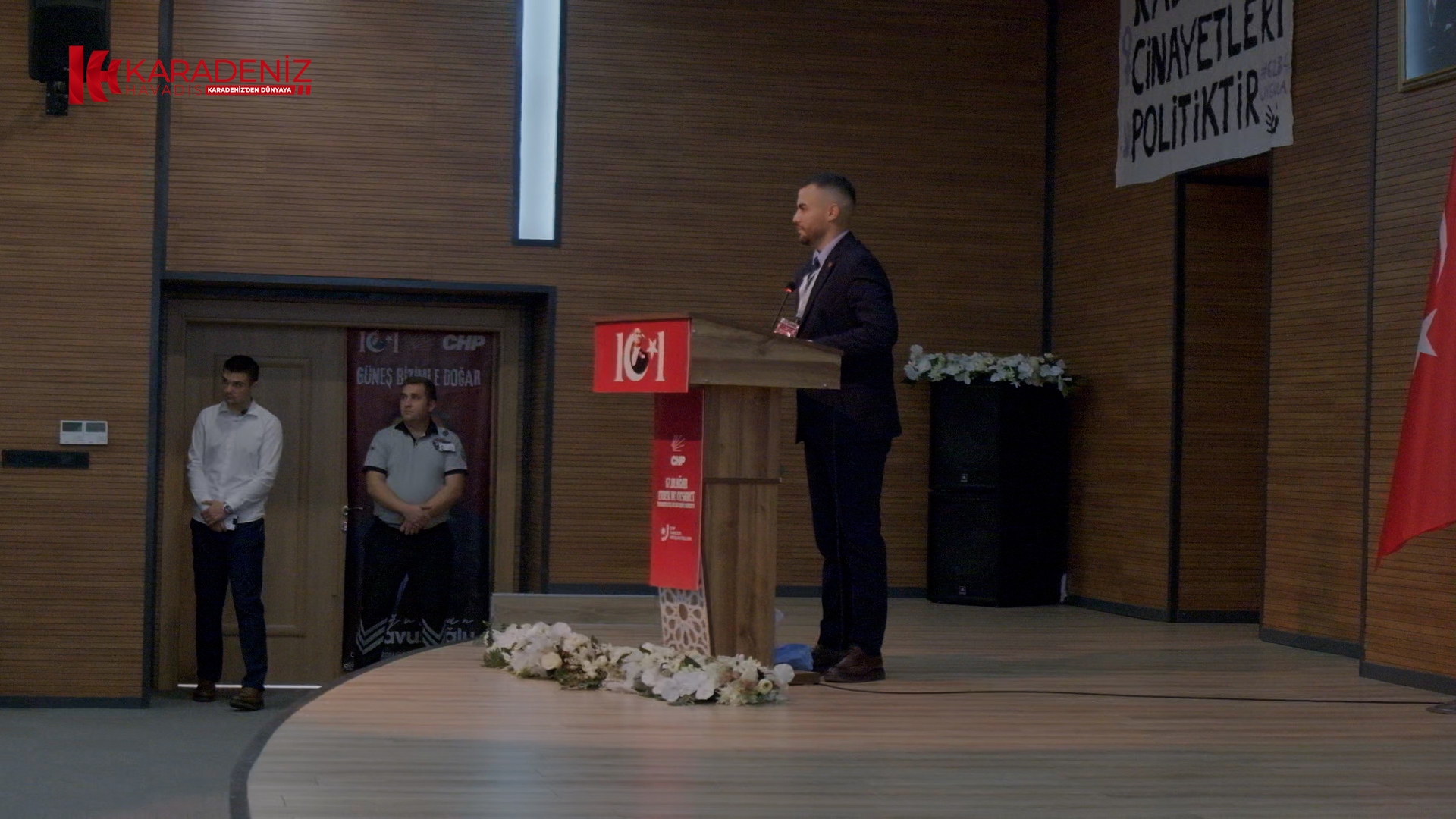 Saygı duruşu ve İstiklal Marşı’nın okunmasının ardından CHP Trabzon Milletvekili Sibel Suiçmez, CHP Gençlik Kolları Genel Başkan Yardımcısı Mustafa Erdi Çakır ve CHP Trabzon Gençlik Kolları Başkanı Oğulcan Çavuşoğlu konuşma yaptı.Cumhuriyet Halk Partisi Üyesi Olmak Emek ve Cesaret İster